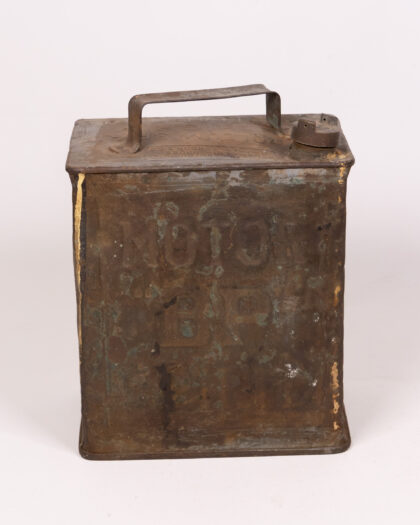 Vintage BP Motor Spirit Fuel Can. Features the BP logo and is weathered, showing its age. Great for petroliana collections. Approx 1940s.