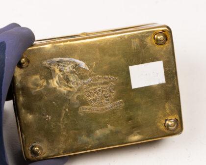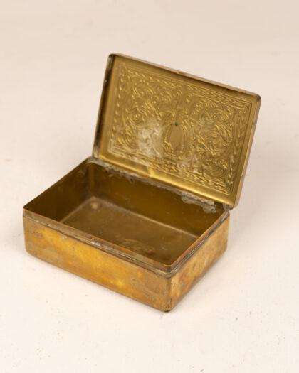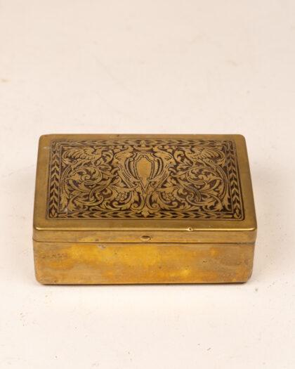 A beautifully crafted vintage brass box with intricate designs, perfect for decorative use.