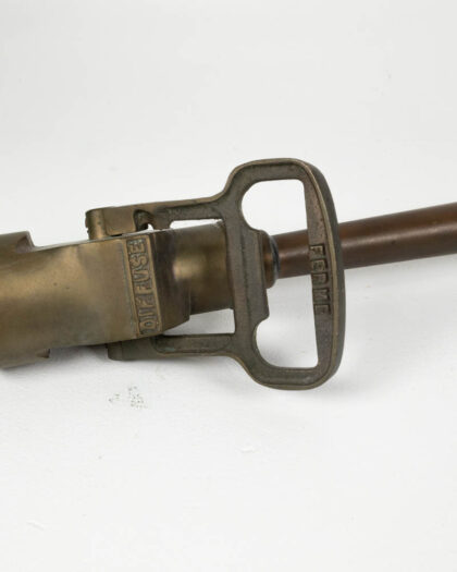 Vintage brass fire hose nozzle with 'diffuse' handle. Patina from age. A unique piece of firefighting history.