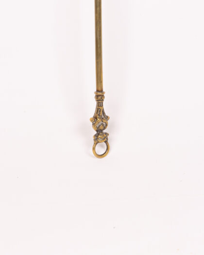 Discover this exquisite vintage brass fire poker, a truly ornamental piece designed to enhance the beauty of your fireplace or living space. Crafted from solid brass, it features a distinctive trident-shaped head and an elegantly ornate middle section, showcasing intricate detailing. The handle is thoughtfully finished with a practical hanging ring at the base. This beautiful fire poker is perfect for display, adding a touch of antique charm and warmth to any home. Its authentic character is highlighted by natural tarnishing, a testament to its age and history, which only adds to its unique appeal.