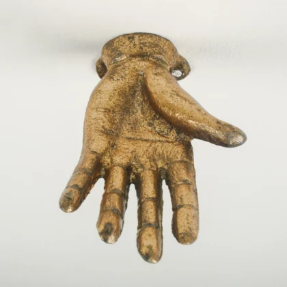 Add a whimsical touch to your hallway, bathroom or dressing area with this striking vintage brass hand wall hook. Cast from solid metal and finished with an aged patina, the outstretched palm design offers both decorative flair and practical utility. Supplied with fixings for secure installation on any flat wall, it creates an eye-catching spot to hang coats, hats, towels or jewellery. Use it solo as a statement piece or in multiples to transform ordinary walls into a functional gallery.
