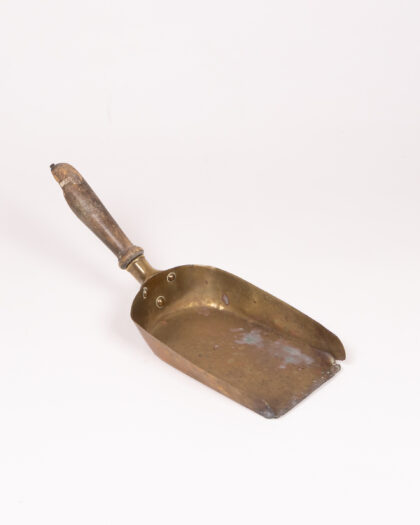 A beautiful vintage brass scoop with a damaged wooden handle. This would make a great gift for any vintage lover for the home.