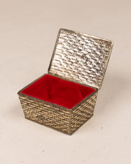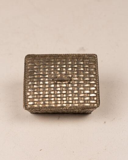A charming vintage brass box with a woven design, perfect for decorative use or small storage.
