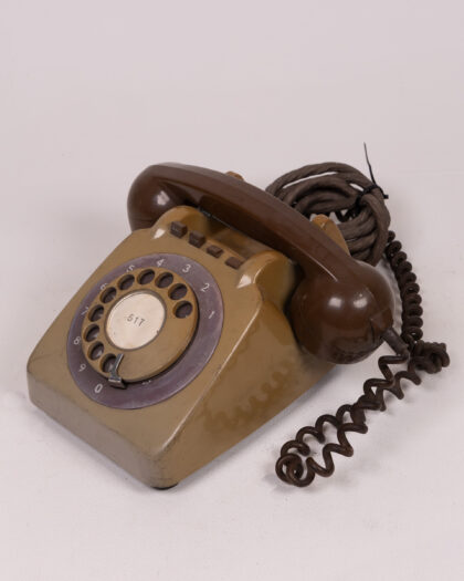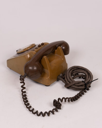 Retro rotary dial telephone. Beige and brown, classic design. A nostalgic piece perfect for adding vintage charm. Good condition for its age.