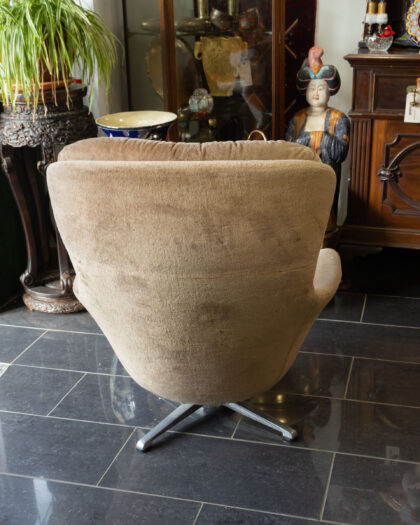 Vintage fabric swivel armchair. Comfortable design in brown fabric. Some wear consistent with age. Couple wee holes. Great addition to any home.