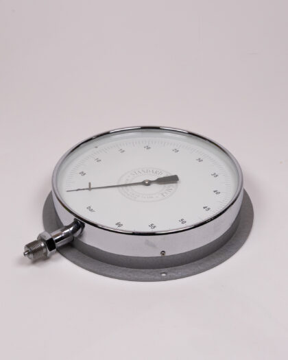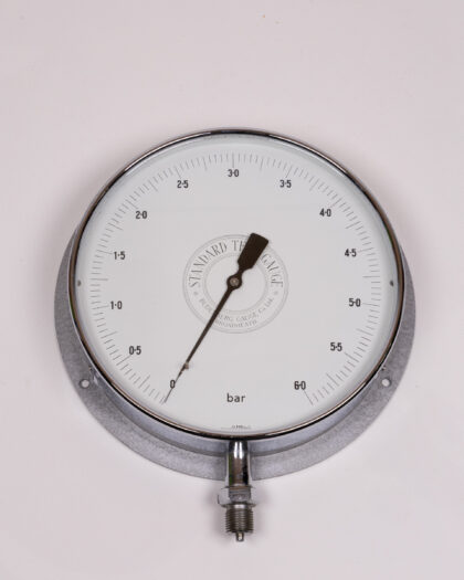 Vintage Budenberg Gauge Co. Ltd. pressure gauge in chrome & steel. An interesting scientific collectable that would suit an industrial style decor.