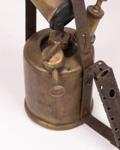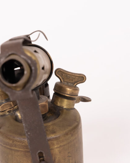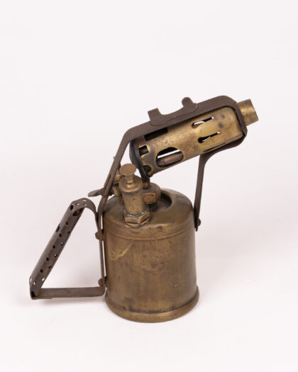 Vintage Burmos 1 Pint Paraffin Blowtorch. Brass and steel construction, with signs of age and wear. Unique industrial decor piece.
