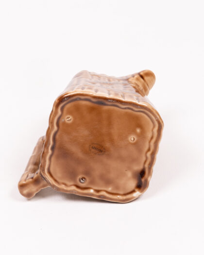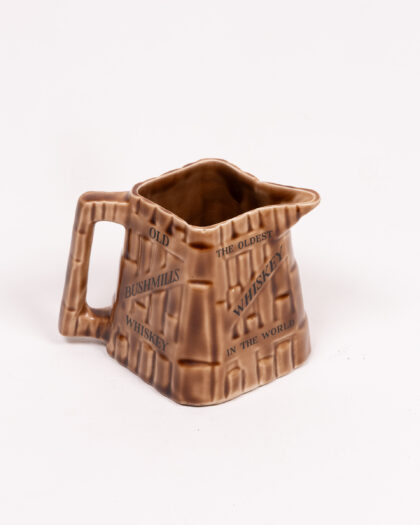 This vintage Bushmills whiskey jug features a distinctive basket weave design and promotes Bushmills whiskey as 'The Oldest Whiskey in the World'. Made of ceramic, the jug is brown with dark writing. It is marked on the base 'Wade Regicor England'. The jug is in good vintage condition, perfect for collectors of Bushmills memorabilia, breweriana, or those looking for a unique addition to their home bar. A charming piece of Irish heritage.