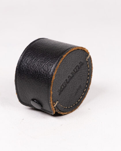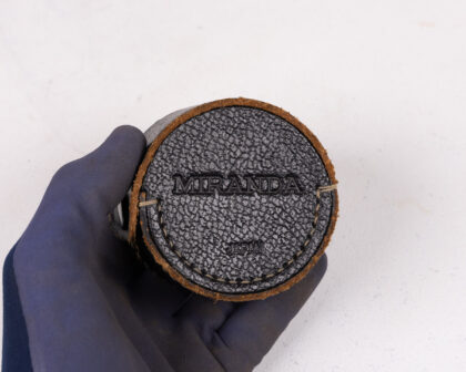 Vintage camera lens filter, complete with original Miranda leather case. Collectible photographic accessory.