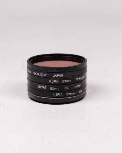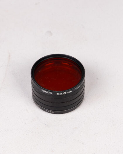 A vintage camera filter in very good condition, with the brands Kenlock and Hoya being visible. The filters are housed in a leather 'Miranda' case. Ideal for someone interested in collecting vintage camera equipment, or for use with film cameras. Please note this item has not been tested and is sold as a prop only.