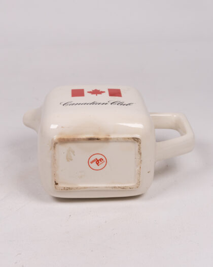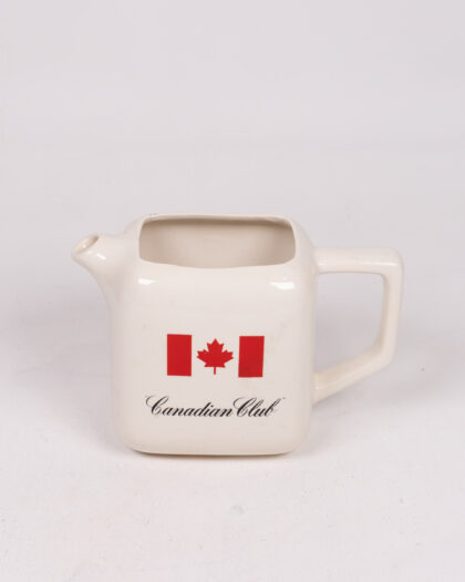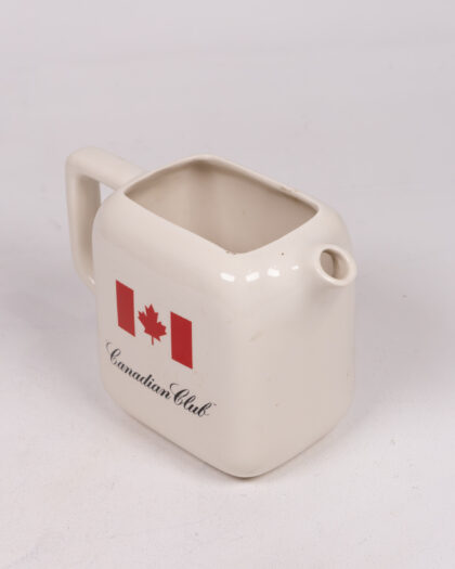 This is a vintage Canadian Club ceramic jug. It features the Canadian Club logo with the Canadian flag on the front. It's a unique collectible piece for fans of Canadian Club or vintage barware.