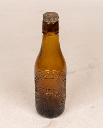Vintage amber glass beer bottle from The New Carlisle Brewery Company, established in 1774. Collectible Breweriana in good condition.