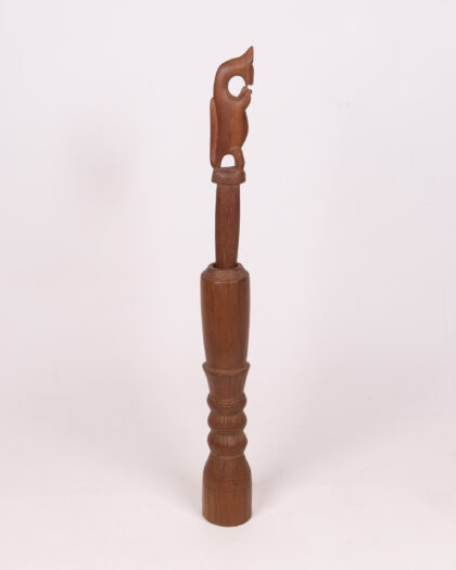 Vintage carved wooden ornament featuring a stylized bird atop a decorative stand. Unique and charming decorative piece for any home.