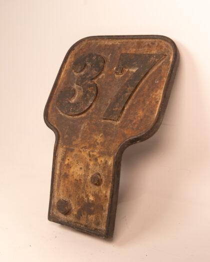 A rustic vintage cast iron number sign featuring '37'. Perfect for collectors or antique decor enthusiasts.