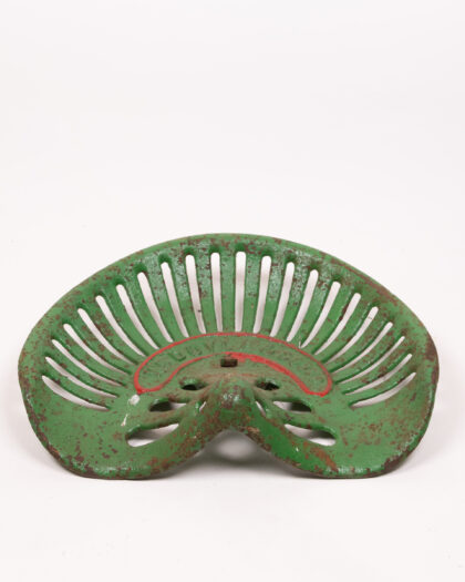 Vintage tractor seat in green and red. 'W Doyle & Sons' printed on it. Authentic antique condition. Perfect for a collector!