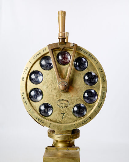 Vintage Chadburns (Liverpool) Telegraph. Solid brass construction, with glass window indicators. Good condition. Great industrial piece.