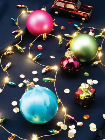 Add a nostalgic touch to your holiday décor with these Vintage Christmas Bulb String Lights. Featuring colourful, reflective bulbs along a 164.5cm wire, these lights enhance your tree with vibrant hues. Battery operated for convenience, requiring 2x AA batteries (not included).
