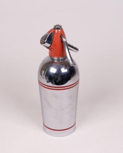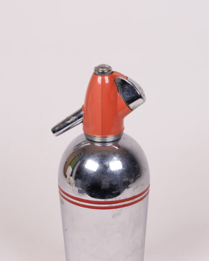 Vintage chrome and orange soda syphon. Sleek design for home bar.