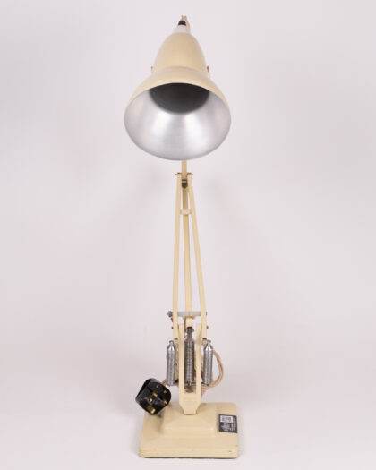 This vintage Anglepoise lamp is a timeless design classic. Finished in cream with steel springs, it offers adjustable lighting for a variety of tasks. The lamp is in good working order and displays signs of use consistent with its age, adding to its charm. A perfect addition to a home office, study, or living space, providing both style and function.