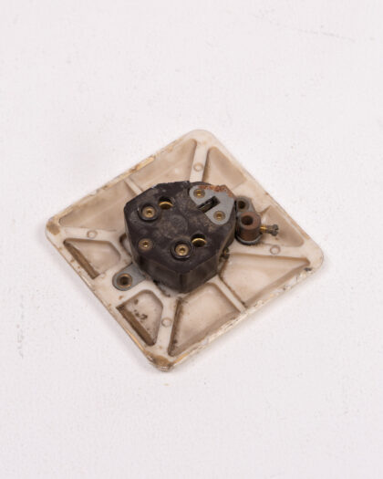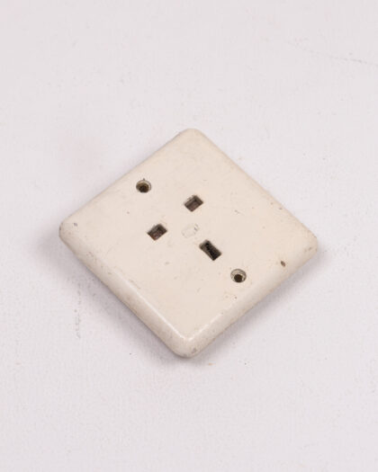 This is a vintage diamond-shaped electrical socket made from Bakelite, featuring a cream finish that has aged gracefully over time. The socket's unique geometric design and Bakelite construction mark it as a distinct piece of mid-20th century electrical design. The cream colour adds to its vintage charm, making it a distinctive decorative item or replacement part for a period property. The item is in good used condition commensurate with age. Perfect for a home bar or man cave.