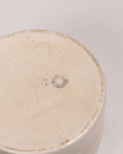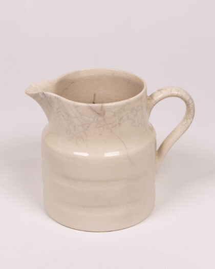 This vintage ceramic jug is in very good condition, with some crackling in the glaze and some light surface marks. It is a creamy white colour and has a simple, elegant shape. The handle is comfortable to hold and the spout pours well. The jug would be ideal for serving milk or cream at the table, or it could be used as a small vase for flowers. The crackled glaze adds character and vintage appeal. The base features a 'Made in England' mark.