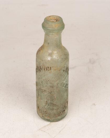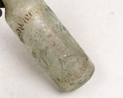 Vintage Denwood & Sons Carlisle bottle featuring embossed details and pale green glass. A unique collectible with character. Collectible bottle.