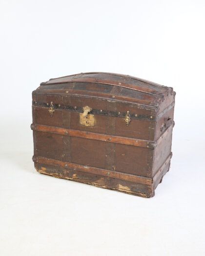 Vintage Dome Top Steamer Trunk with Interior Lining