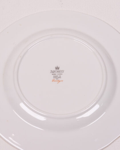 Vintage Duchess Bone China plate with an Evelyn floral design and gold trim. Perfect for a vintage decor or china collector.