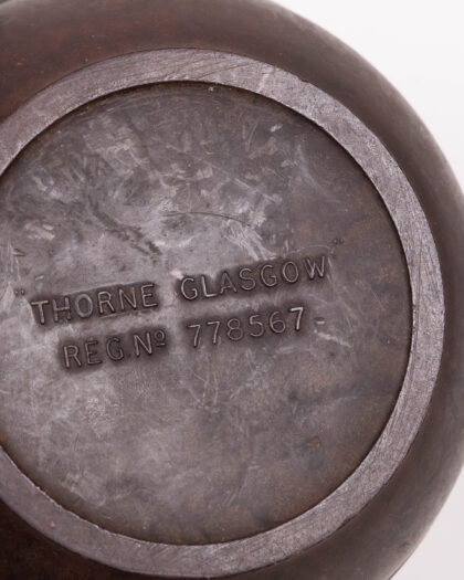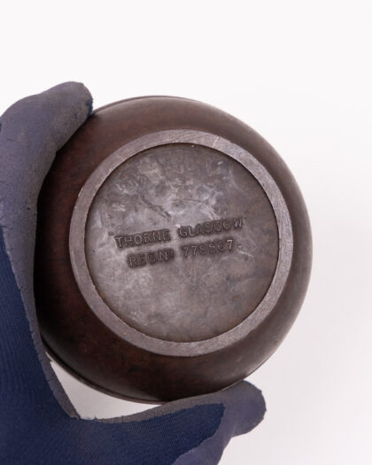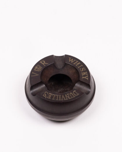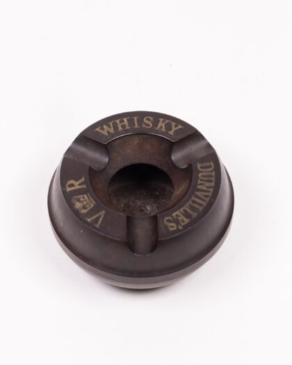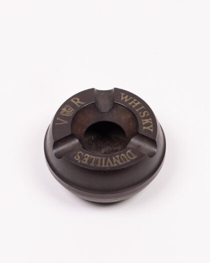 This is a vintage Dunville's VR Whisky ashtray, crafted from a heavy metal. The ashtray features the Dunville's Whiskey branding. Inscribed is the inscription "Dunville's VR Whisky". It bears a registration mark for 'Thorne Glasgow'. The ashtray is in good vintage condition, showing signs of wear commensurate with age. This is a lovely item for any whisky enthusiast or collector of breweriana. Perfect for the home bar.