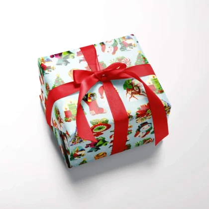 Festive wrapping paper with classic Christmas imagery. Ideal for adding a nostalgic touch to your presents this year.
