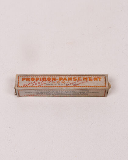 Vintage 'PRORIDON-PANSEMENT' medical dressing kit in original box. French text. Shows age but intact. Medical collectible.