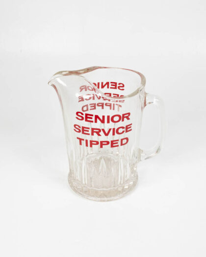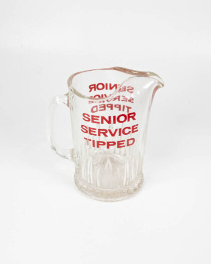 Vintage Glass Pitcher with Red Senior Service Text