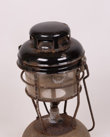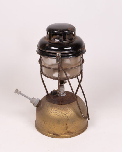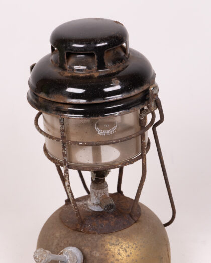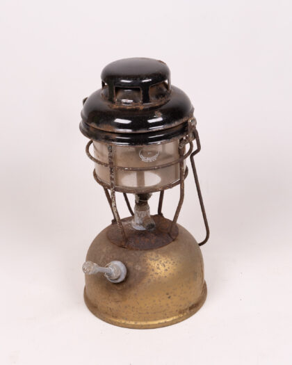 Vintage lantern with a gold coloured base and black top. Ideal for collectors or those looking to add a vintage touch to their home.