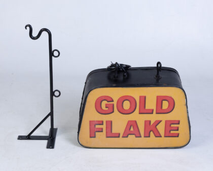 Vintage Gold Flake tobacco shop sign with hanging bracket. A unique piece of tobacciana for collectors.