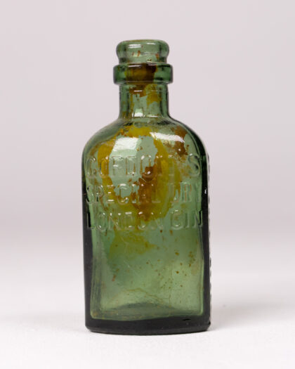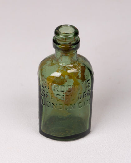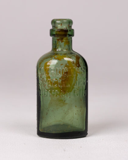 Vintage Green Glass Gordon’s Gin Bottle with Embossed Lettering