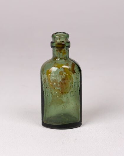 Discover a piece of history with this charming vintage Gordon's Special Dry London Gin green glass bottle. Featuring distinctive embossed lettering on its rectangular body, this bottle proudly displays "Gordon's Special Dry London Gin" and the iconic "ESTABLISHED 1769" mark, along with a unique patent number on the rear. Its rounded shoulders lead to a short neck and a lipped opening, characteristic of its era. The glass retains its original green hue, with natural discoloration and some residue inside, adding to its authentic vintage patina. This unique collectible is an ideal addition to any bottle or breweriana collection, or a distinctive decorative accent for a home bar or living space.