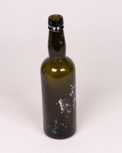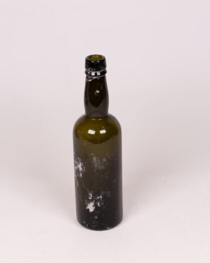 Vintage green glass bottle. Classic shape, ideal for display, or collecting. Some residue and imperfections adding to its character. c1900