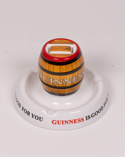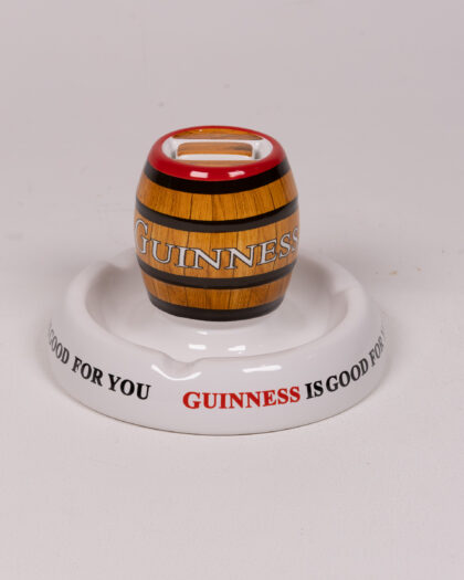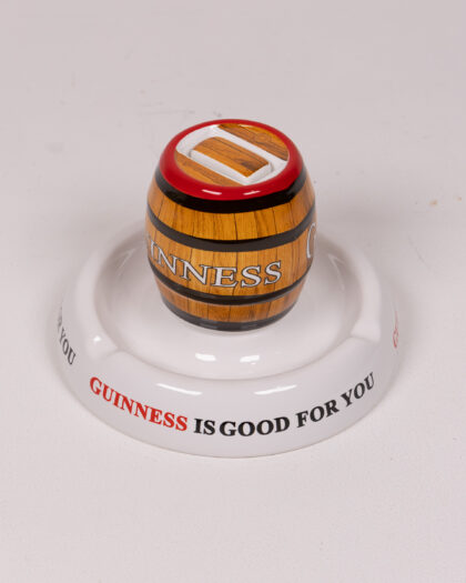 Vintage Guinness ashtray. Made by Minton's in Great Britain, Stoke-on-Trent. Features a barrel design with the Guinness logo and 'Guinness is Good For You' slogan. A great addition to a breweriana collection or home bar. In excellent condition for its age, with only minor signs of wear. This ashtray is perfect for those who appreciate vintage advertising and iconic brands. A great conversation starter.