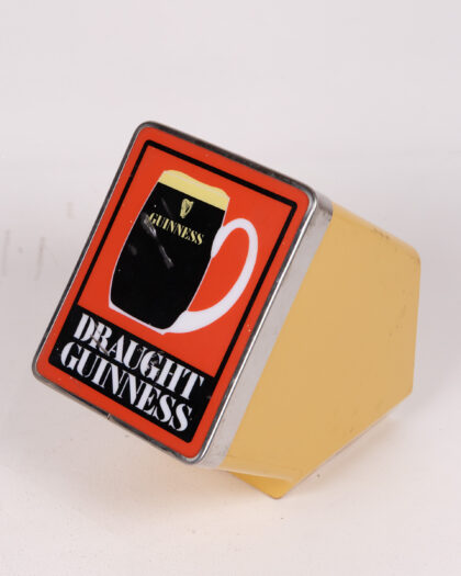 Vintage Guinness Draught pump cover, crafted with durable plastic and featuring a bright orange branded design with a chrome trim. It is in good vintage condition with minor cosmetic signs of age. Ideal for a home bar or display.