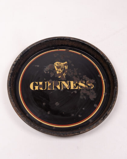 Vintage Guinness tray with the classic black and gold colour scheme. Features the Guinness logo and harp emblem. The tray shows signs of wear consistent with age, including some spotting and surface scratches. A great piece for a home bar, man cave, or as a decorative item for any Guinness lover. Adds a touch of vintage charm to any space.
