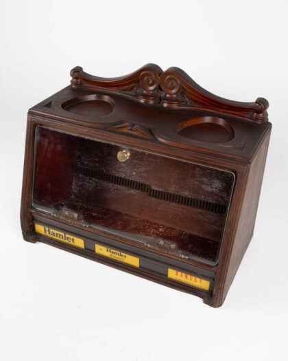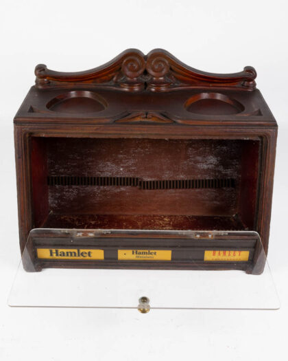 Vintage wooden Hamlet cigar display cabinet with acrylic door and advertising. Manufactured by Roger Aplin Ltd, Dublin. A unique piece. Wear consistent with age.