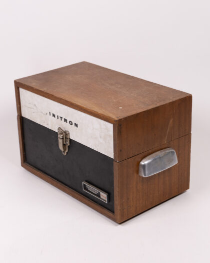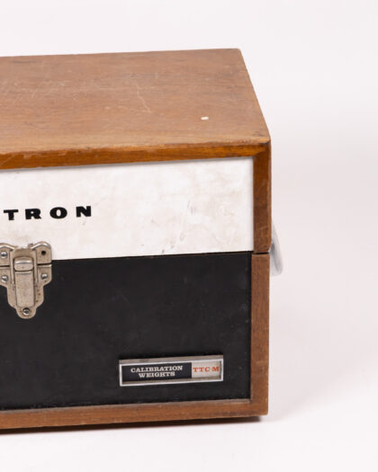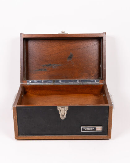 Vintage Instron calibration weights box. Wooden construction with metal hardware. Good condition. Ideal storage for home or workshop.