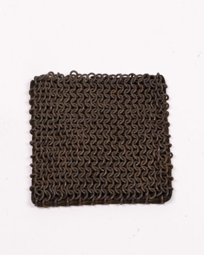 Vintage iron chainmail coaster with suede backing. Good condition.