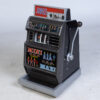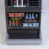 Vintage Jubilee Riviera Mini Maxi one-armed bandit. This classic gambling machine features vibrant graphics, including images of women and fruit symbols. The body is primarily grey and black, with a silver lever and coin slot. It is likely a vintage piece, showing some signs of wear consistent with age. There may be some surface scratches and wear on the paint. Overall, it’s a nostalgic piece of gambling history, perfect for collectors or vintage enthusiasts.