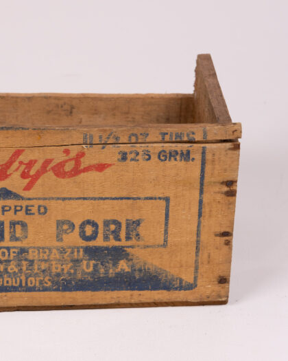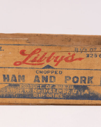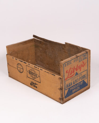 Vintage Libby's chopped ham and pork wooden crate. Ideal for rustic home decor. Has 'Product of Brazil' printed on it.