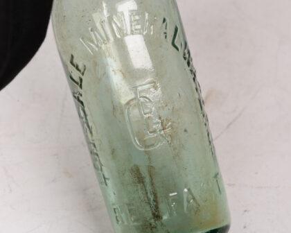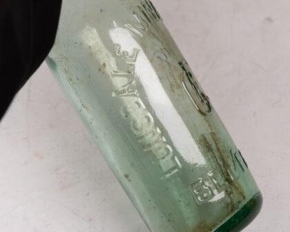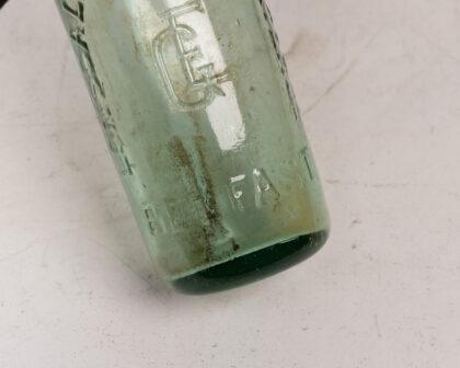 Vintage green glass Lonsdale Belfast mineral water bottle. Embossed lettering, non-matching cap. Perfect for collectors of breweriana or vintage bottles.