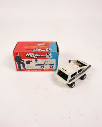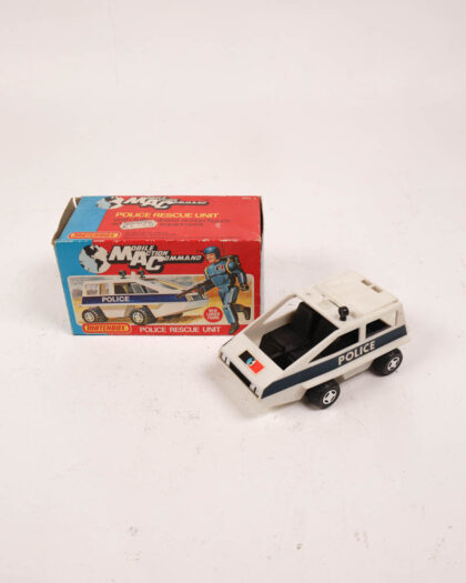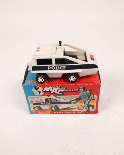 Vintage Matchbox MAC Mobile Action Command Police Rescue Unit. Made in Hong Kong. Box is worn, car in good condition.