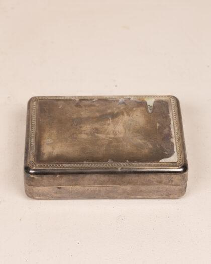 This vintage metal box features a classic design with intricate detailing around the edges. The box shows signs of wear and patina, adding to its antique charm. Ideal for collectors or as a decorative piece, it can be used to store small items or as a unique display. The box measures approximately 20cm x 15cm x 5cm.