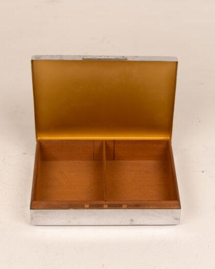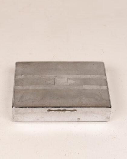 A vintage metal cigarette case with a sleek design, perfect for collectors.