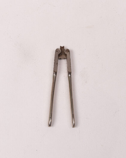 Vintage nutcracker made of metal. The tool has an aged patina. A handy addition to any kitchen for cracking nuts with ease. It also is a great display item to add to a collection or use as vintage decor.